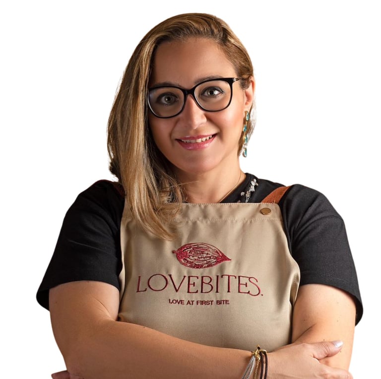 تحت قيادتها، أصبحت Love Bites Choco رمزًا للابتكار والرقي، بنِكهات جريئة ومكونات فريدة، من الشوكولاتة الياقوتية والفواكه الاستوائية، إلى المستكة وماء الورد. أطفالها الثلاثة هم أول المتذوقين وأكثر من تثق برأيهم، ويمثلون القلب الحقيقي وراء كل وصفة.